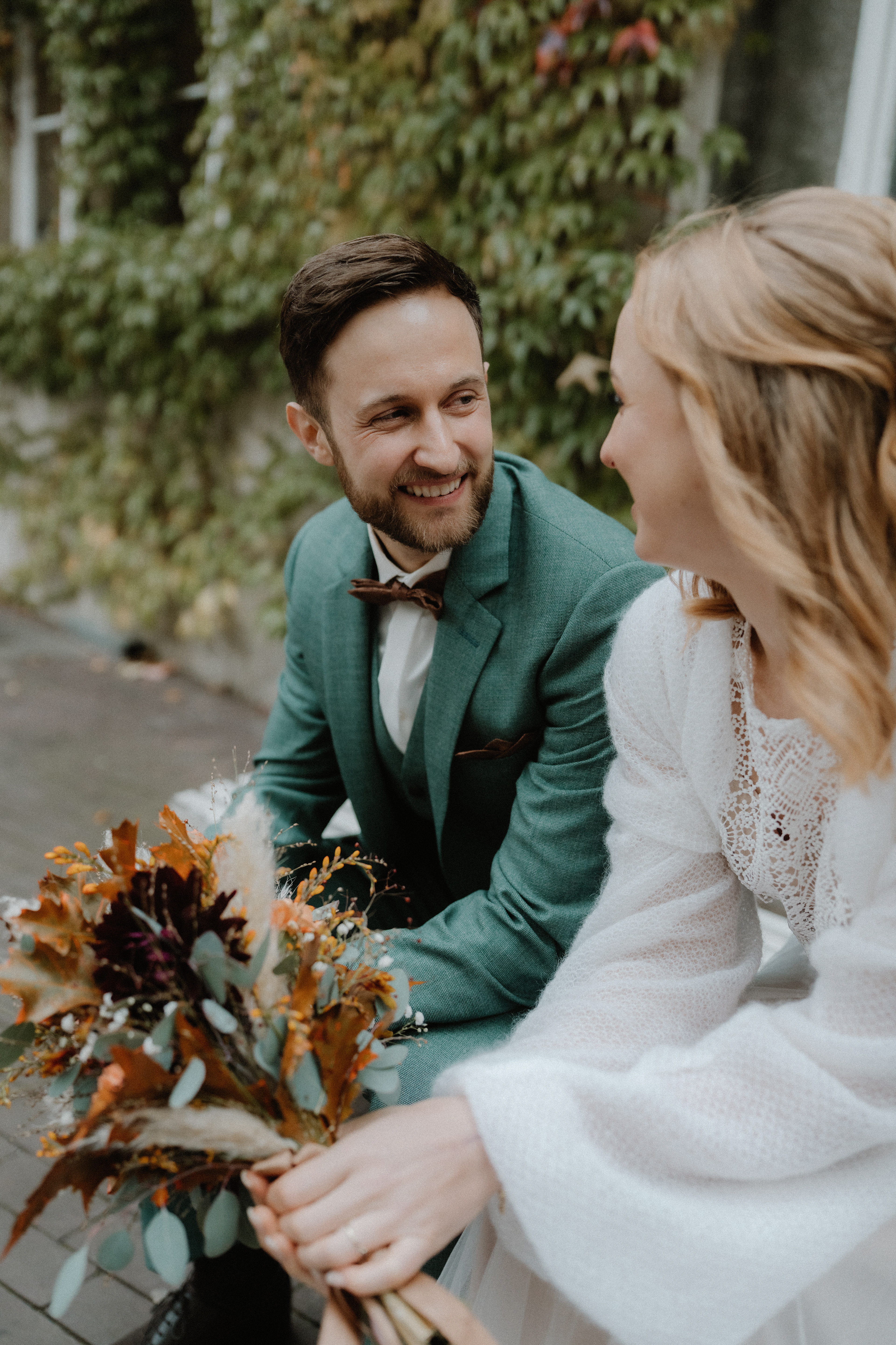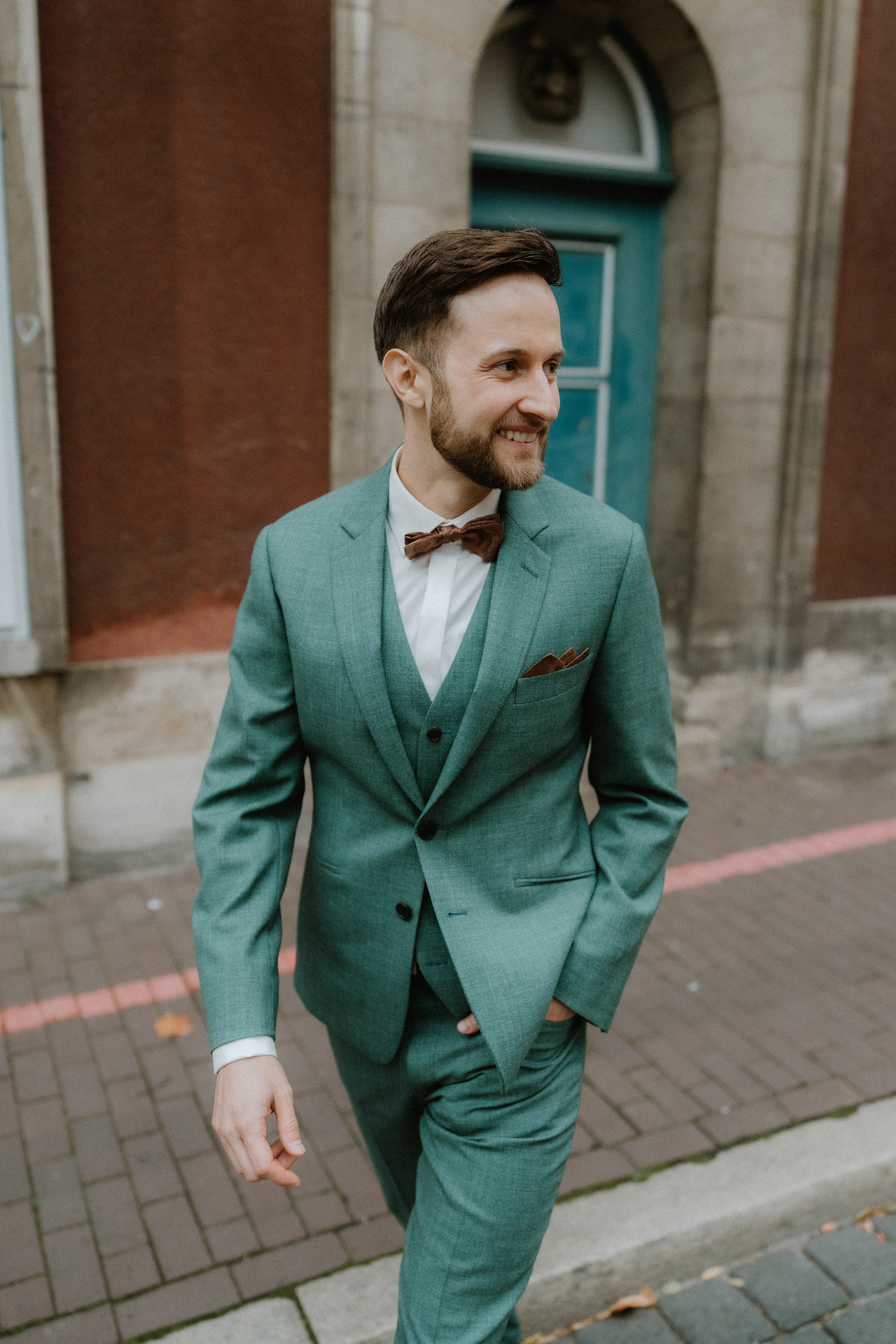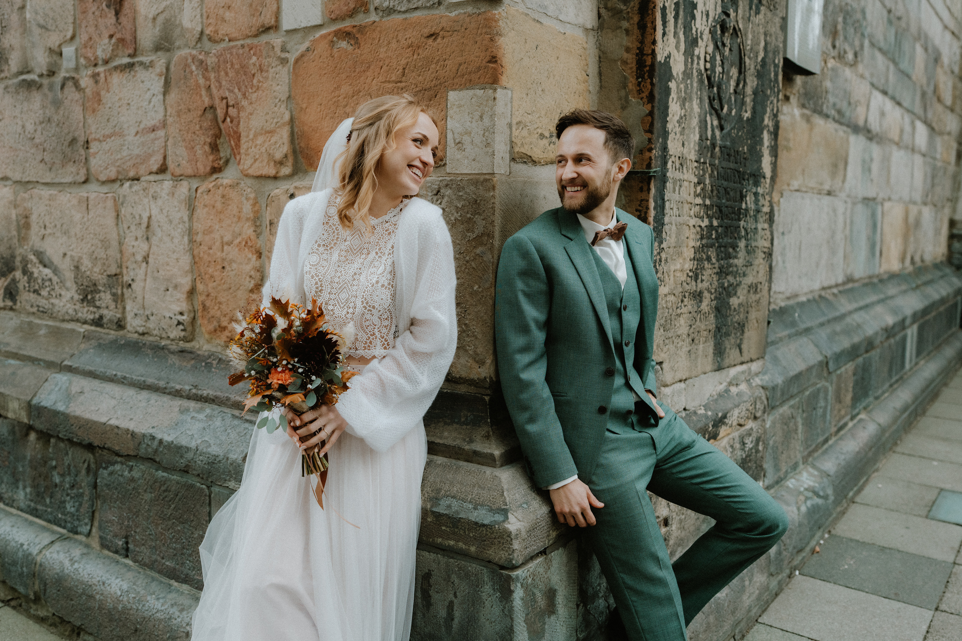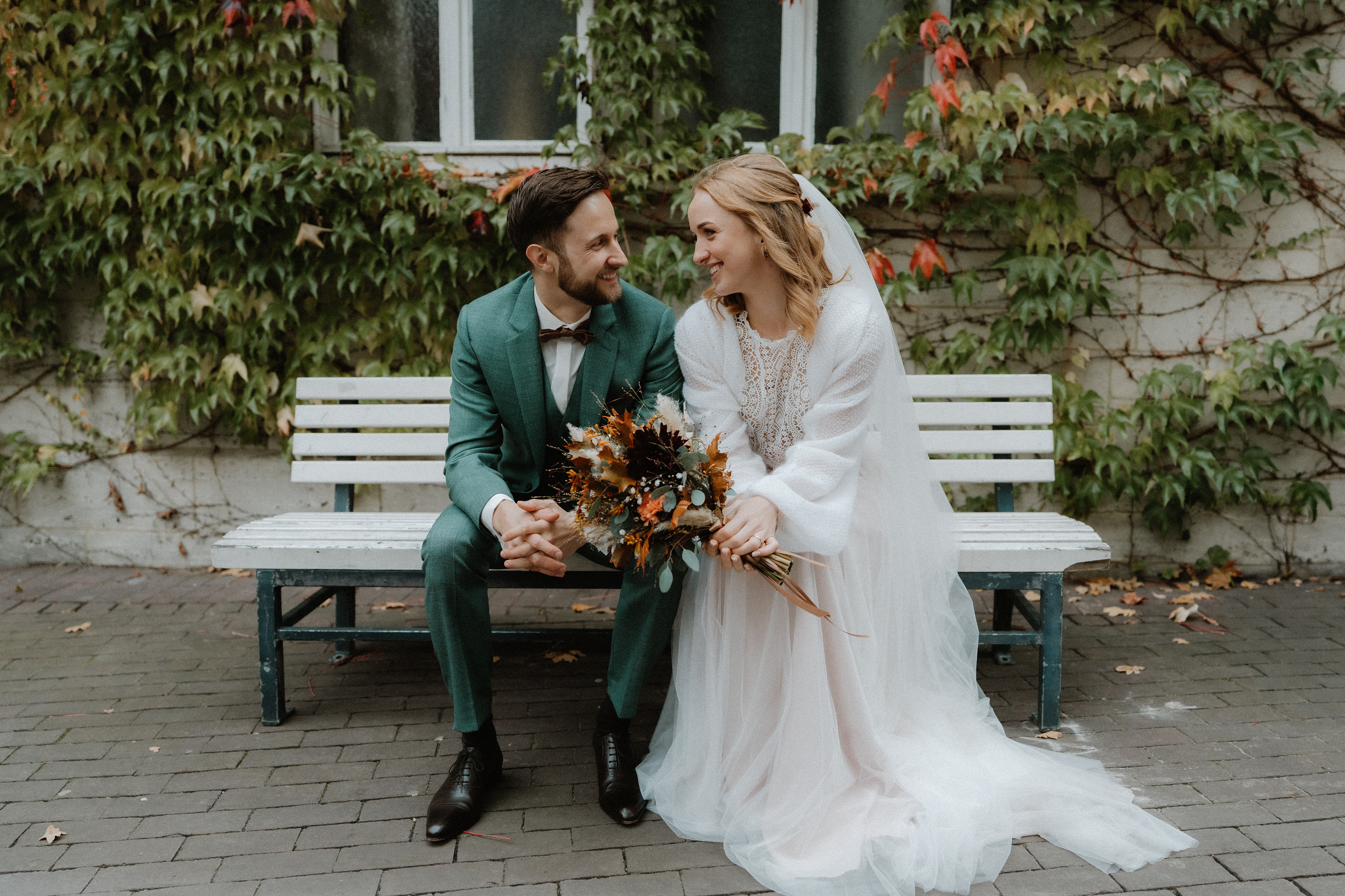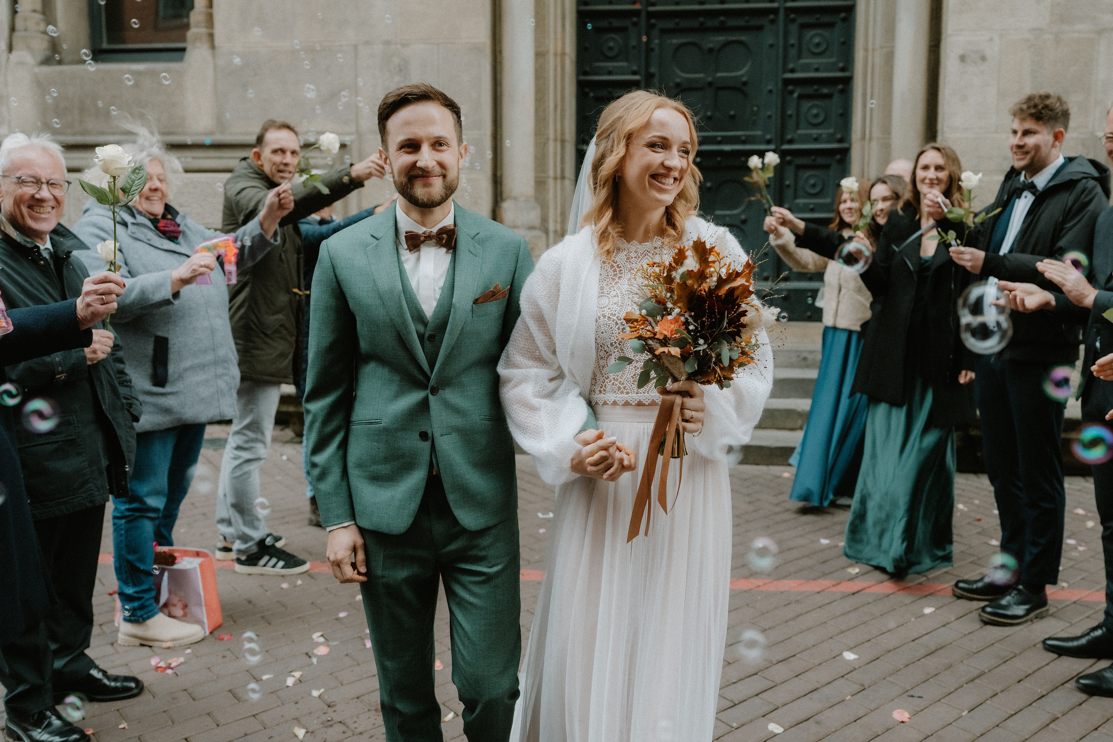 Für das anschließende Paarshooting ging es in die Altstadt Hannover. Die historischen Straßen und Gassen sind perfekt für zeitlose Hochzeitsfotos. Da es bereits Oktober war, waren nur wenige Passanten unterwegs, sodass wir die ruhige, herbstliche Atmosphäre für natürliche und ungestellte Aufnahmen nutzen konnten.
