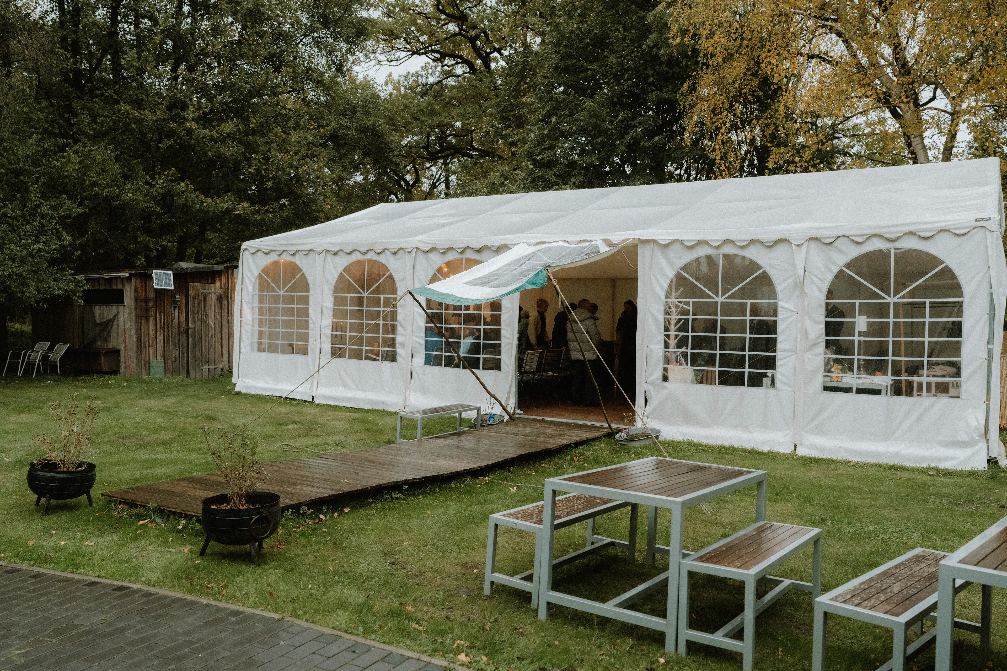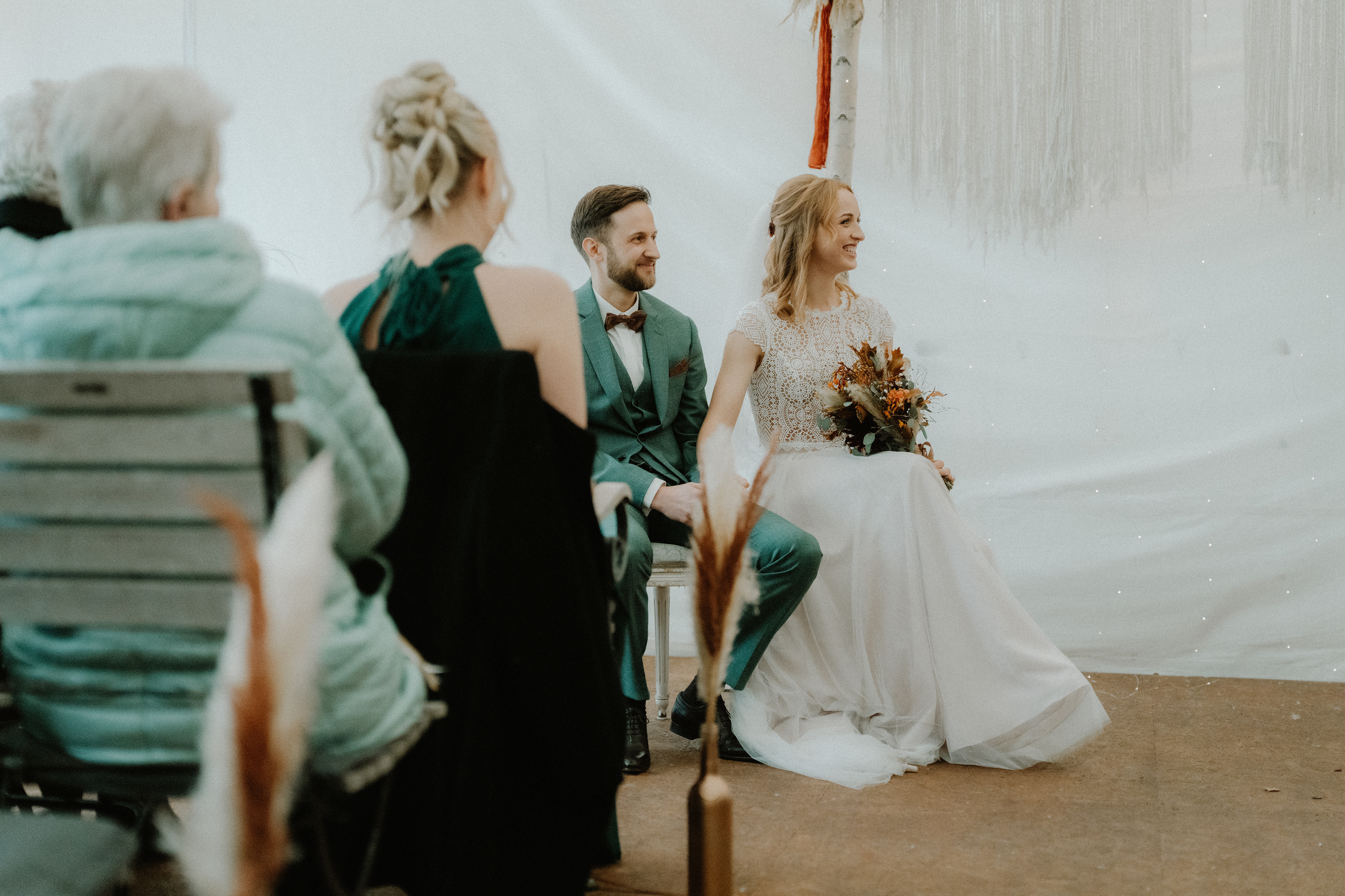 Die freie Trauung fand im Garten des Restaurant Beans in der Wedemark statt. Aufgrund der kühleren Temperaturen im Oktober wurde im stilvollen Zelt gefeiert – ein großer Vorteil dieser Location. Je nach Wetter bietet das Restaurant Beans sowohl eine Trauung auf der Wiese unter freiem Himmel als auch eine geschützte, ebenso stimmungsvolle Variante im Zelt.